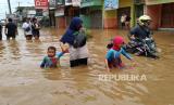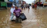 REPUBLIKA.CO.ID, DAYEUHKOLOT. -- Banjir cukup tinggi kembali menerjang sejumlah wilayah di Kabupaten Bandung, seperti Kecamatan Dayeuhkolot, Baleendah, dan Bojongsoang, Jumat (12/1/2024).
