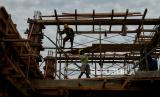 REPUBLIKA.CO.ID, JAKARTA. -- Pekerja beraktivitas di area proyek pembangunan fasilitas gedung tambahan Rumah Pompa Kemang, Jalan Kemang Raya, Bangka, Mampang Prapatan, Jakarta Selatan, Jumat (12/1/2024).