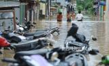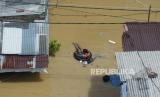 Banjir merendam Jalan Dayeuhkolot, Kabupaten Bandung, Jumat (12/1/2024). (FOTO : Edi Yusuf/Republika)