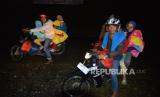REPUBLIKA.CO.ID, AGAM. -- Warga membawa keluarganya untuk mengungsi sementara secara mandiri di Jorong Batang Silasiah, Nagari Bukik Batabuah, Agam, Sumatera Barat, Jumat (12/01/2024).