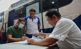 REPUBLIKA.CO.ID, JAKARTA. -- Warga melakukan perpanjangan masa aktif Surat Izin Mengemudi (SIM) melalui pelayanan SIM Keliling di LTC Glodok, Jakarta, Sabtu (13/1/2024).
