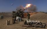 Unit artileri bergerak Israel menembakkan peluru dari Israel selatan menuju Jalur Gaza, dekat perbatasan Israel-Gaza, Senin, (6/10/2023). (FOTO : AP Photo/Ohad Zwigenberg)