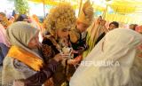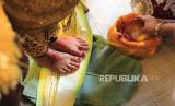 REPUBLIKA.CO.ID, SAMATIGA. -- Prosesi cuci kaki dara baro (pengantin wanita) sebelum memasuki rumah linto baro (pengantin pria) pada pesta perkawinan adat Aceh di Desa Alue Raya, Samatiga, Aceh Barat, Aceh, Sabtu (13/1/2024).