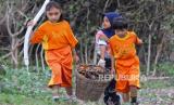 Dua pelajar mengangkut keranjang berisi sampah di Tambak Wedi, Surabaya, Jawa Timur, Minggu (14/1/2024). Aksi sejumlah pelajar bersama komunitas Tunas Hijau itu merupakan bentuk kepedulian mereka terhadap kebersihan lingkungan khususnya di wilayah pesisir. (FOTO : ANTARA FOTO/Didik Suhartono)