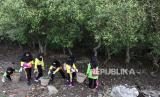 REPUBLIKA.CO.ID, SURABAYA Sejumlah pelajar memungut sampah dari pantai di Tambak Wedi, Surabaya, Jawa Timur, Ahad (14/1/2024).