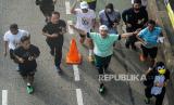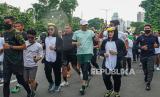 REPUBLIKA.CO.ID, JAKARTA -- Calon presiden nomor urut 3, Ganjar Pranowo, berolahraga lari saat mengikuti kegiatan Penguin Seliwerun di Senayan Park, Jakarta, Ahad (14/1/2024).