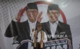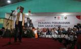 Calon Presiden nomor urut 1 Anies Baswedan menyampaikan pidato politik saat Jumpa Saksi AMIN dan Simpatisan di GOR Podomoro Natar, Lampung Selatan, Ahad (14/1/2024). Pada acara tersebut Anies Baswedan berpesan kepada saksi dan simpatisan AMIN untuk mengawasi proses penghitungan suara Pilpres 2024 di Tempat Pemungutan Suara (TPS) setempat agar tidak terjadi kecurangan. (FOTO : Republika/Putra M. Akbar)