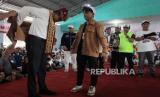 Calon Presiden nomor urut 1 Anies Baswedan memakai jaket anime Attack On Titan yang diberikan oleh simpatisan saat Jumpa Saksi AMIN dan Simpatisan di GOR Podomoro Natar, Lampung Selatan, Ahad (14/1/2024). Pada acara tersebut Anies Baswedan berpesan kepada saksi dan simpatisan AMIN untuk mengawasi proses penghitungan suara Pilpres 2024 di Tempat Pemungutan Suara (TPS) setempat agar tidak terjadi kecurangan. (FOTO : Republika/Putra M. Akbar)