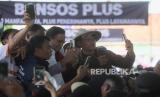 Calon Presiden nomor urut 1 Anies Baswedan berswafoto dengan petani saat Rembuk Tani Lampung Timur di Lapangan Sidorejo, Sekampung Udik, Lampung Timur, Ahad (14/1/2024). Pada kesempatan tersebut Anies Baswedan berdiskusi dengan kelompok petani setempat mengenai kendala yang dialami di bidang pertanian dan memprioritaskan penanganan permasalahan pangan dengan membentuk tim khusus yang akan mengurus tata niaga pangan. (FOTO : Republika/Putra M. Akbar)