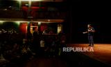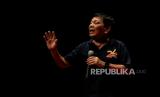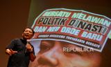 Aktivis peristiwa 15 Januari 1974 atau Malari, Hariman Siregar menyampaikan pidato saat peringatan 50 tahun peristiwa 15 Januari 1974 (Malari) di Teater Kecil, Taman Ismail Marzuki, Jakarta, Senin (15/1/2024). Peringatan Malari tersebut digelar bersamaan dengan perayaan HUT ke-24 Indonesia Demokrasi Monitor (Indemo) yang mengangkat tema The Last Battle Democracy dan Lawan Politik Dinasti. (FOTO : Republika/Thoudy Badai)