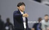 Pelatih timnas Indonesia Shin Tae-Yong memberikan instruksi pada pertandingan sepak bola Grup D Piala Asia antara Indonesia dan Irak di Stadion Ahmad Bin Ali di Al Rayyan, Qatar, Senin (15/1/2024). Pada pertandingan itu Indonesia harus mengakui keunggulan Irak dengan skor 1-3. (FOTO : AP Photo/Hussein Sayed)