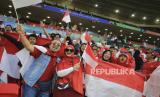 Suporter timnas Indonesia memberikan dukungan pada pertandingan sepak bola Grup D Piala Asia antara Indonesia dan Irak di Stadion Ahmad Bin Ali di Al Rayyan, Qatar, Senin (15/1/2024). Pada pertandingan itu Indonesia harus mengakui keunggulan Irak dengan skor 1-3. (FOTO : AP Photo/Hussein Sayed)