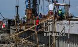 REPUBLIKA.CO.ID, BANTEN-- Pekerja menyelesaikan proyek pembangunan tanggul laut di Pantai Dadap, Kabupaten Tangerang, Banten, Selasa (16/1/2024).