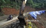 Sejumlah kendaraan melintas di jalan lintas Bengkulu-Sumatera Selatan KM44 yang mengalami amblas di Kabupaten Bengkulu Tengah, Bengkulu, Selasa (16/1/2024). Jalan lintas yang menghubungkan Provinsi Bengkulu-Kota Lubuklinggau Provinsi Sumsel tersebut amblas akibat curah hujan yang tinggi dan saat ini dalam tahap pelebaran sementara oleh Badan Pelaksana Jalan Nasional (BPJN) wilayah Bengkulu. (FOTO : ANTARA FOTO/Muhammad Izfaldi)