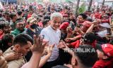 REPUBLIKA.CO.ID, PEKALONGAN -- Calon presiden nomor urut 03, Ganjar Pranowo (tengah), berdialog dengan nelayan di Pantai Wonokerto, Pekalongan, Jawa Tengah, Selasa (16/1/2024).