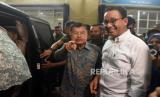 REPUBLIKA.CO.ID, MAKASSAR -- Calon presiden nomor urut 01, Anies Baswedan, berbincang dengan wakil presiden ke-10 dan ke-12 Jusuf Kalla seusai makan malam di rumah makan di Makassar, Sulawesi Selatan, Selasa (16/1/2024). Dalam kampanyenya di Makassar, Anies mengunjungi dan menginap di kediaman Jusuf Kalla.