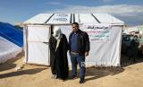 Pengungsi Palestina Mohamed (Kiri) dan istrinya tiba untuk pernikahan sederhana mereka di Rafah, (15/1/2024). (FOTO : EPA)