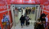 Pengunjung usai melihat produk fashion di Pasar tanah Abang Litle Bangkok, Jakarta, Rabu (17/1/2024). Pasar Tanah Abang menghadirkan pusat grosir eceran fashion modern bernama Litle Bangkok yang di resmikan pada Senin (15/1) yang berlokasi di Jembatan Metro Tanah Abang. Litle Bangkok merupakan adaptasi dari trend penjualan online yang dilakukan jastiper dan selebgram yang melakukan live shopping di Bangkok. Kehadiran Litle Bangkok diharapkan mampu menjadi destinasi wisata fashion sehingga dapat mengihupkan kembali penjualan offline. (FOTO : Republika/Thoudy Badai)