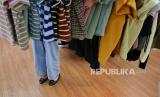 Pengunjung memilah produk fashion di Pasar tanah Abang Little Bangkok, Jakarta, Rabu (17/1/2024). (FOTO : Republika/Thoudy Badai)