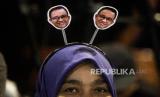 Tenaga kesehatan memakai bando bergambarkan Calon Presiden nomor urut 1 Anies Baswedan saat Desak Anies bersama tenaga kesehatan di Jakarta, Kamis (18/1/2024). Kampanye dialogis Desak Anies itu untuk memberikan ruang kepada tenaga kesehatan menyampaikan aspirasi terkait permasalahan di lingkup tenaga kesehatan seperti perbaikan teknis sistem pengobatan dengan BPJS, masih minimnya rumah sakit tipe A di beberapa kota, serta peningkatan SDM, gaji dan status honorer bagi tenaga kesehatan. (FOTO : Republika/Putra M. Akbar)