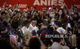 Calon Presiden nomor urut 1 Anies Baswedan tiba saat menghadiri acara Desak Anies bersama tenaga kesehatan di Jakarta, Kamis (18/1/2024). Kampanye dialogis Desak Anies itu untuk memberikan ruang kepada tenaga kesehatan menyampaikan aspirasi terkait permasalahan di lingkup tenaga kesehatan seperti perbaikan teknis sistem pengobatan dengan BPJS, masih minimnya rumah sakit tipe A di beberapa kota, serta peningkatan SDM, gaji dan status honorer bagi tenaga kesehatan. (FOTO : Republika/Putra M. Akbar)