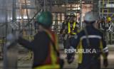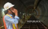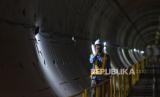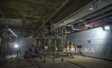 Pekerja beraktivitas di proyek MRT CP 201 fase 2A Kawasan Monumen Nasional, Jakarta, Kamis (18/1/2024). Pekerjaan pembangunan CP 201 (Stasiun Thamrin dan Monas) fase 2A MRT Jakarta berjalan sesuai jadwal. Per 25 Desember 2023, perkembangan pembangunan telah mencapai 67,26 persen. Fase 2A MRT Jakarta akan menghubungkan Stasiun Bundaran HI hingga Kota sepanjang sekitar 5,8 kilometer dan terdiri dari tujuh stasiun bawah tanah, yaitu Thamrin, Monas, Harmoni, Sawah Besar, Mangga Besar, Glodok, dan Kota. (FOTO : Republika/Prayogi)
