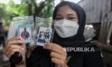 Simpatisan memperlihatkan foto dan stiker Calon Presiden nomor urut 1 Anies Baswedan di Jakarta, Kamis (18/1/2024). Mobil kiriman Olppaemi Project yang merupakan fandom k-popers tersebut membawa bingkisan makanan yang nantinya dibagi-bagikan kepada para pendukung Anies. Tak hanya makanan, Olppaemi Project juga menyediakan souvenir berupa photocard, sticker, dan standing banner bergambar Anies. (FOTO : Republika/Putra M. Akbar)
