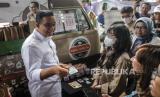 Calon Presiden nomor urut 1 Anies Baswedan berincang dengan anggota komunitas Olppaemi Project di Jakarta, Kamis (18/1/2024). Mobil kiriman Olppaemi Project yang merupakan fandom k-popers tersebut membawa bingkisan makanan yang nantinya dibagi-bagikan kepada para pendukung Anies. Tak hanya makanan, Olppaemi Project juga menyediakan souvenir berupa photocard, sticker, dan standing banner bergambar Anies. (FOTO : Republika/Putra M. Akbar)