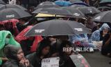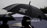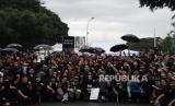 Sejumlah pegiat HAM menggelar aksi 17 Tahun Kamisan di depan Istana Merdeka, Jakarta, Kamis (18/1/2024). Mereka menyoroti narasi isu pelanggaran HAM yang muncul lima tahun sekali saat pemilihan presiden merupakan bentuk penyebaran disinformasi serta mendiskreditkan perjuangan korban, keluarga korban, pegiat HAM serta publik yang selama puluhan tahun menuntut keadilan. (FOTO : Republika/Edwin Dwi Putranto)