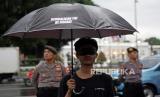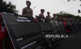 Sejumlah polisi berjaga saat pegiat HAM menggelar aksi 17 Tahun Kamisan di depan Istana Merdeka, Jakarta, Kamis (18/1/2024). Mereka menyoroti narasi isu pelanggaran HAM yang muncul lima tahun sekali saat pemilihan presiden merupakan bentuk penyebaran disinformasi serta mendiskreditkan perjuangan korban, keluarga korban, pegiat HAM serta publik yang selama puluhan tahun menuntut keadilan. (FOTO : Republika/Edwin Dwi Putranto)
