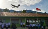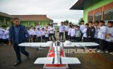 Pelajar melihat drone VTOL milik Balai Penyelidikan dan Pengembangan Teknologi Kebencanaan Geologi (BPPTKG) Yogyakarta yang kembali usai memantau kawasan kawah Gunung Marapi, di Batang Silasiah, Nagari Bukik Batabuah, Agam, Sumatera Barat, Jumat (19/1/2024). BPPTKG Badan Geologi - Kementerian ESDM yang biasa mengamati Gunung Merapi di Jawa Tengah kini diperbantukan ke Sumbar selama masa siaga darurat bencana erupsi Gunung Marapi hingga 24 Januari 2024. (FOTO : ANTARA FOTO/Iggoy el Fitra)