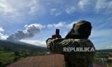 Petugas TNI memotret Gunung Marapi yang mengeluarkan abu vulkanik saat erupsi di Batang Silasiah, Nagari Bukik Batabuah, Agam, Sumatera Barat, Jumat (19/1/2024). Pemerintah setempat menetapkan status siaga darurat hingga 24 Januari 2024 agar bisa memaksimalkan penanganan warga yang berada di zona bahaya Gunung Marapi. (FOTO : ANTARA FOTO/Iggoy el Fitra)