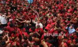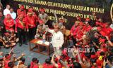 Calon Presiden nomor urut 2 Prabowo Subianto (tengah) melambaikan tangan saat menghadiri Bahaupm Bide Bahana (Silaturahim) Pasukan Merah TBBR di Pontianak, Sabtu (20/1/2024). Pada acara yang dihadiri ratusan warga Suku Dayak yang tergabung dalam Pasukan Merah Tariu Borneo Bangkule Rajakng (TBBR) tersebut Prabowo Subianto mendapat permintaan untuk memperhatikan pendidikan anak-anak masyarakat Dayak. (FOTO : ANTARA FOTO/Jessica Wuysang)