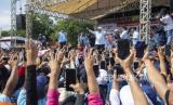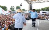 Prabowo kampanye bersama mantan politikus PDIP Maruarar Sirait. Diketahui, Majalengka merupakan basis suara Maruarar Sirait selama ini.