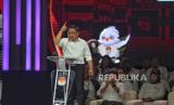 Cawapres nomor urut 2 Gibran Rakabuming Raka saat Debat Keempat Pilpres 2024 di Jakarta Convention Center (JCC), Jakarta, Ahad (21/1/2024). Debat Keempat Pilpres 2024 mengangkat tema terkait pembangunan berkelanjutan, sumber daya alam, lingkungan hidup, energi, pangan, agraria, masyarakat adat dan desa (FOTO : Republika/Prayogi)