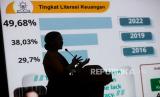 Kepala Eksekutif Pengawas Perilaku Pelaku Usaha Jasa Keuangan, Edukasi, dan Perlindungan Konsumen OJK Friderica Widyasari Dewi menyampaikan paparannya saat Kegiatan Edukasi Keuangan di Indonesia Banking School, Jakarta, Senin (22/1/2024). Otoritas Jasa Keuangan (OJK) menyelenggarakan kegiatan Edukasi Keuangan terkait investasi, pinjaman hingga perencanaan keuangan yang diikuti sekitar 1500 pelajar secara luring dan daring guna meningkatkan literasi keuangan masyarakat khususnya bagi pelajar. (FOTO : Republika/Putra M. Akbar)