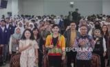 Kepala Eksekutif Pengawas Perilaku Pelaku Usaha Jasa Keuangan, Edukasi, dan Perlindungan Konsumen OJK Friderica Widyasari Dewi (tengah) bersama Ketua Indonesia Banking School 2020-2024 Kusumaningtuti Sandriharmy Soetiono (kiri) berfoto bersama pelajar saat Kegiatan Edukasi Keuangan di Indonesia Banking School, Jakarta, Senin (22/1/2024). Otoritas Jasa Keuangan (OJK) menyelenggarakan kegiatan Edukasi Keuangan terkait investasi, pinjaman hingga perencanaan keuangan yang diikuti sekitar 1500 pelajar secara luring dan daring guna meningkatkan literasi keuangan masyarakat khususnya bagi pelajar. (FOTO : Republika/Putra M. Akbar)