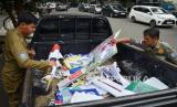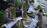 Petugas Satpol PP bersama Badan Pengawas Pemilihan Umum (Bawaslu) Bandung Wetan menertibkan Alat Peraga Kampanye (APK) yang melanggar aturan di Jalan Dipenogoro, Kota Bandung, Senin (22/1/2024). Penertiban tersebut merupakan upaya dalam menjaga estetika, keindahan, ketertiban dan keamanan Kota Bandung. (FOTO : Edi Yusuf/Republika)