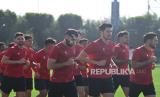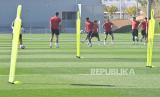 REPUBLIKA.CO.ID, LUSAIL -- Sejumlah pesepak bola timnas Indonesia melakukan latihan di Lapangan Al Egla 2, Lusail, Qatar, Senin (22/1/2024).
