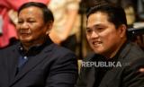 Calon presiden nomor urut 2 Prabowo Subianto (kiri) dan Erick Thohir (kanan) menghadiri acara Relawan Erick Thohir alumni Amerika Serikat for 02 (ETAS) di Plaza Senayan, Jakarta, Senin (22/1/2024). ETAS mendeklarasikan dukungan terhadap pasangan calon presiden dan wakil presiden nomor urut 2 Prabowo Subianto dan Gibran Rakabuming Raka pada Pemilu 2024. (FOTO : Republika/Thoudy Badai)