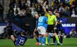 Giovanni Simeone dari Napoli (tengah) menerima kartu merah saat Supercoppa Italiana, Piala Super Italia, pertandingan final antara SSC Napoli dan Inter Milan, di Riyadh, Arab Saudi, (22/1/2024). (FOTO : EPA-EFE/STRINGER)
