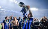 Para pemain Inter merayakan usai menjuarai Supercoppa Italiana, Piala Super Italia, pertandingan final antara SSC Napoli dan Inter Milan, di Riyadh, Arab Saudi, (22/1/2024). (FOTO : EPA-EFE/STRINGER)