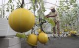REPUBLIKA.CO.ID, MALANG. -- Melon jenis Devina golden yang dibudidayakan dengan teknik hidroponik di rumah kaca Hortila, Polbangtan, Malang, Jawa Timur, Senin (22/1/2024).