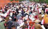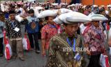 REPUBLIKA.CO.ID, TEMANGGUNG -- Warga membawa beras dalam karung dan paket sembako saat penyerahan Bantuan Pangan Cadangan Beras Pemerintah (CBP) 2024 di Temanggung, Jawa Tengah, Senin (22/1/2024).