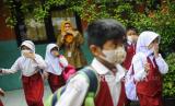 REPUBLIKA.CO.ID, BANTEN. -- Siswa mengikuti kegiatan belajar mengajar menggunakan masker di SDN Kepuh, Kota Cilegon, Banten, Selasa (23/1/2024).