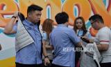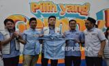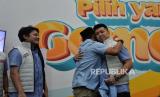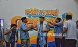 REPUBLIKA.CO.ID, JAKARTA. -- Komandan TKN Fanta Arief Rosyid Hasan menerima salah satu Pendiri Relawan Pasukan Ganjar Muda (Pagar Muda) Calvin Leonard saat acara deklarasi melangkah ke 02 di Fanta Headquarters, Jakarta, Selasa (23/1/2024).