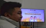 Layar TV menampilkan poster acara deklarasi melangkah ke 02 di Fanta Headquarters, Jakarta, Selasa (23/1/2024). Salah Satu Pendiri Relawan Pasukan Ganjar Muda (Pagar Muda) Calvin Leonard memutuskan berpindah haluan mendukung pasangan Capres-cawapres nomor urut 2 Prabowo Subianto dan Gibran Rakabuming Raka. Hal ini didasari atas kekuatan tekad karena melihat pasangan calon nomor urut 2 lebih banyak menyerap aspirasi dan kreativitas anak muda dibandingkan paslon lainnya. Dalam kesempatan tersebut Calvin Leonard juga mendeklarasikan Langkah Bersama sebagai salah satu Relawan Prabowo - Gibran. (FOTO : Republika/Prayogi)
