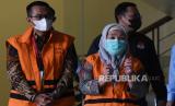 REPUBLIKA.CO.ID, JAKARTA. -- Dirjen Pembinaan Penempatan Tenaga Kerja Kementerian Tenaga Kerja dan Transmigrasi Reyna Usman dan Pejabat Pembuat Komitmen Pengadaan Sistem Proteksi TKI Kemnakertrans I Nyoman Darmanta berjalan saat penetapan dan penahanan tersangka usai menjalani pemeriksaan di Gedung Merah Putih KPK, Jakarta, Kamis (25/1/2024).