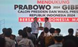Calon Presiden nomor urut 2 Prabowo Subianto memberikan pidato dalam acara Deklarasi Nasional Aliansi Advokat Indonesia di Balai Kartini, Jakarta, Jumat (26/1/2024). Aliansi Advokat Indonesia resmi mendukung serta turut memperjuangkan pasangan Prabowo-Gibran sebagai Presiden dan Wakil Presiden 2024-2029. (FOTO : Republika/Prayogi)