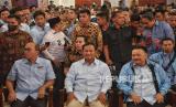 Calon Presiden nomor urut 2 Prabowo Subianto bersama Ketua Umum Aliansi Advokat Indonesia Otto Hasibuan dan Ketua Tim Kampanye Nasional (TKN) Rosan P Roeslani saat menghadiri acara Deklarasi Nasional Aliansi Advokat Indonesia di Balai Kartini, Jakarta, Jumat (26/1/2024). Aliansi Advokat Indonesia resmi mendukung serta turut memperjuangkan pasangan Prabowo-Gibran sebagai Presiden dan Wakil Presiden 2024-2029. (FOTO : Republika/Prayogi)